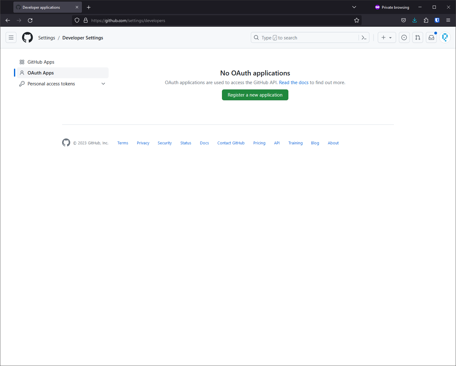 Navigate to your GitHub account settings: Settings > Developer Settings > OAuth Apps > Register a new application