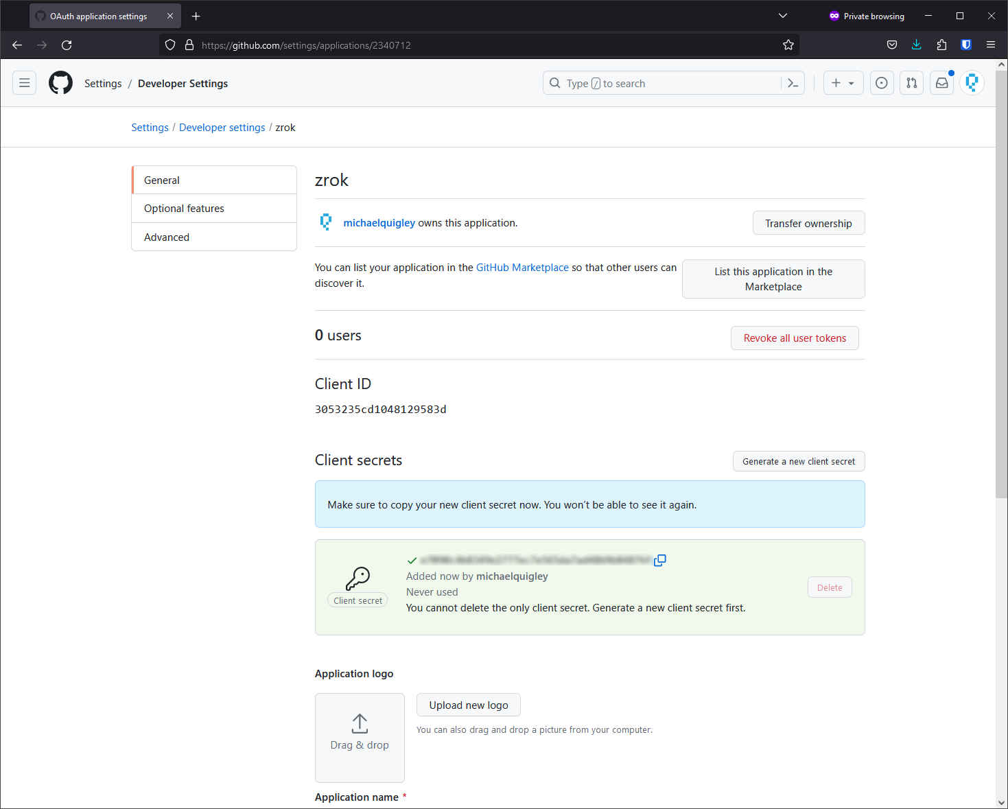 Create a new client secret: